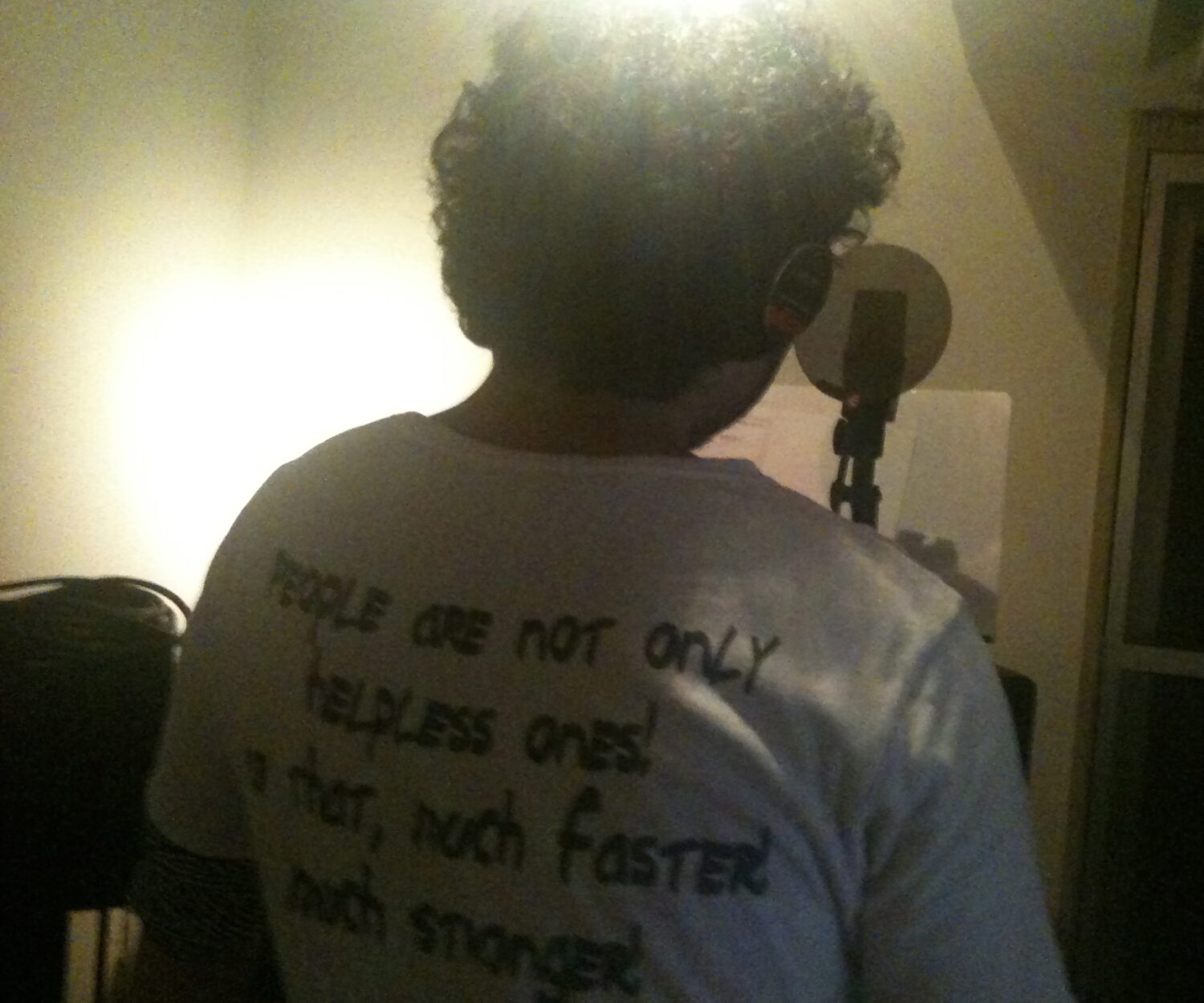 後ろ姿からもうかなりいい味出してるのは、100artists 初の男性Vocal「長尾 哲平」。 彼を知ったのは、Music is good!のライブ。とても良い声が印象に残っておりました。同郷だし何かで一緒にできたら良いなと今回の参加となったわけですが、なんとこれが彼の初ソロレコーディングと聞いてビックリ! それはもう「長尾 哲平 ここにあり!」っつう位パフォーマンンスを期待したいね! 今回の曲は「今井美樹さん piece of my wish」。 まずはキー合わせと軽くメインを合わせられればいいかなーと思っていたら、途中でちょっとコーラスを入れてみたところがテンションが激変。ラストはかなりゴージャスな感じに仕上がりそう。 → 長尾 哲平 Facebook